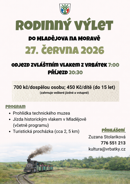 Vyrazíme speciálním vlakem do Mladějova na Moravě, kde nás čeká prohlídka Průmyslového muzea a následně jízda úzkokolejkou.