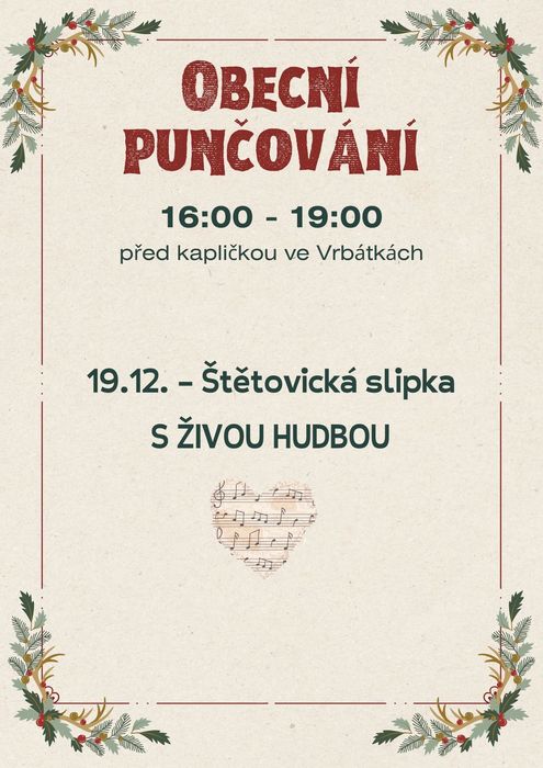 V pátek se sejdeme ve Vrbátkách na punčích, kde nás pohostí Štětovická slipka a těšit se můžete i na živou hudbu.