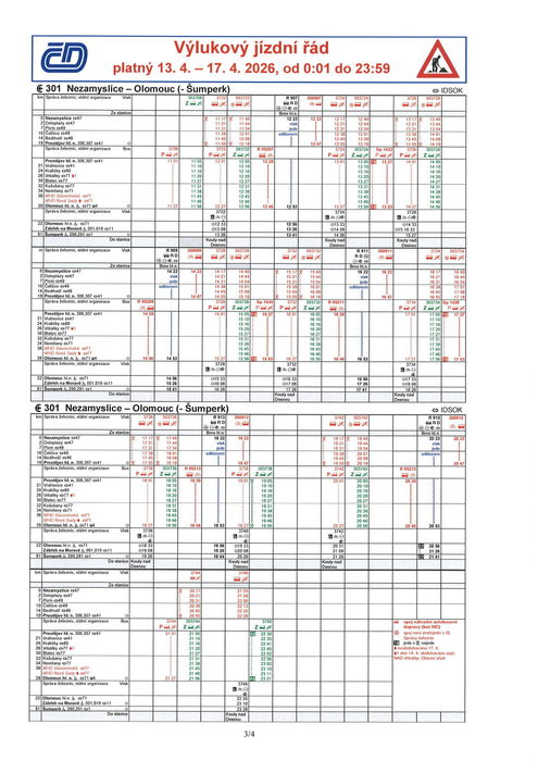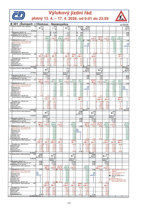 Výluka na trati 301 Olomouc - Nezamyslice a výlukový jízdní řád