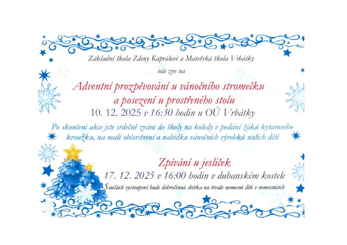 Úvod > Život v obci > Aktuality > ZŠ Vrbátky - Adventní prozpěvování u vánočního stromečku a posezení u prostřeného stolu